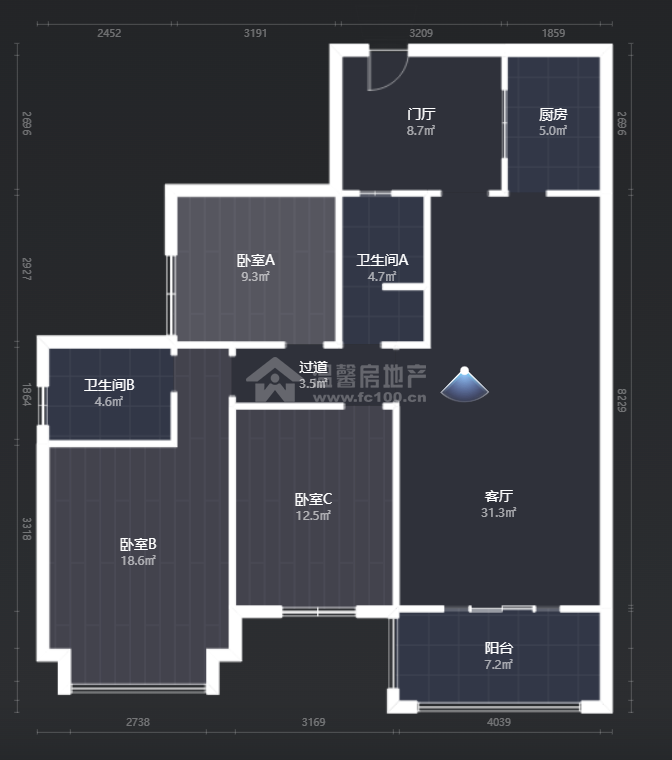 | 3室2厅 | 101.59m² | 西 东南 | 精装 | 住宅 |2016年建 - 高层 - (共30层) - 3梯8户电梯 寄售88.8 万单价8741.02元/m²