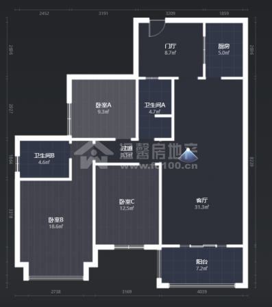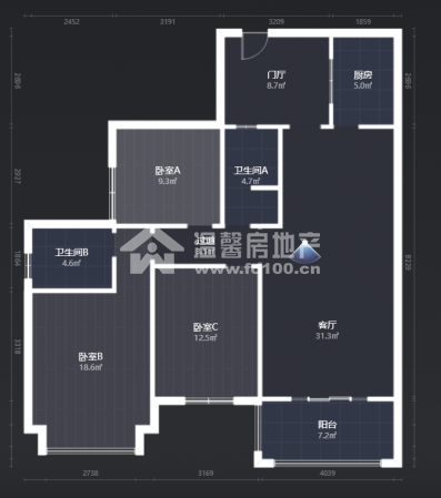 | 3室2厅 | 101.00m² | 南 | 中装 | 住宅 |2016年建 - 高层 - (共30层) - 3梯8户电梯88.8 万单价8792.08元/m²